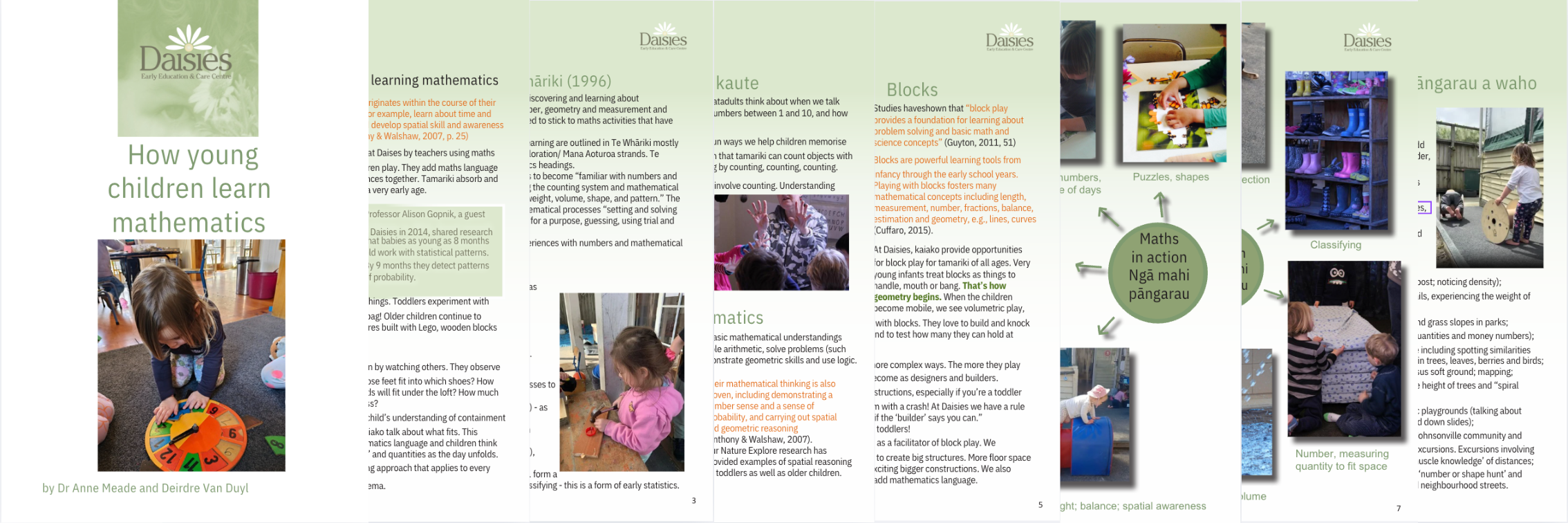 “Children typically learn mathematical concepts at Daises by teachers using maths language - informally but intentionally - as children play. They add maths language too when they are engaged in everyday experiences together. Tamariki absorb and process mathematics ideas and language from a very early age.”